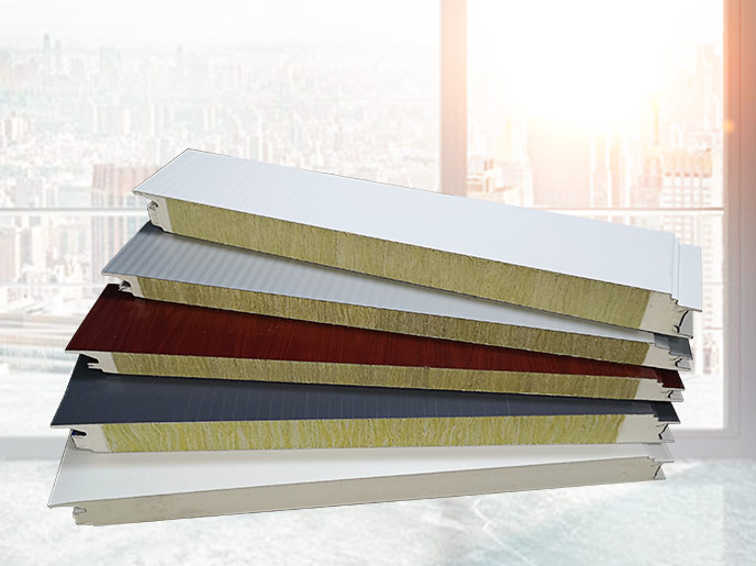 ??????聚氨酯封邊巖棉夾芯板硬質發泡是目前國際公認的建筑圍護防火保溫板材。是選用兩層高品質的彩色涂層鋼板或其他精密壓型的金屬板材做面板,輥壓成型后,將分條后的巖棉90度翻轉(使其纖維垂直于上下兩層鋼板),通過高強度的、高粘結力的、高防火的粘結劑,將優質巖棉與金屬面板強力粘接,復合而成美觀、平整、剛韌的建筑板材。成型后的板材具有優良的防火、保溫、環保等特點,為工業建筑圍護系統提供了一個絕佳的選擇。